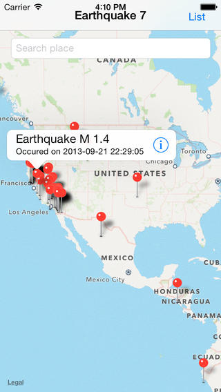 แอพตัวนี้มีชื่อว่า Earthquake 7 ถ้าดูจาก Description จะพบว่าเป็นแอพที่เอาไว้ดูข้อมูลแผ่นดินไหวจากทั่วโลก โดยวางขายที่ราคา $1.99 ภาพประกอบที่แสดงก็มีแค่รูปหมุดปักอยู่บนแผนที่ พร้อมกับช่อง Search อยู่ด้านบน