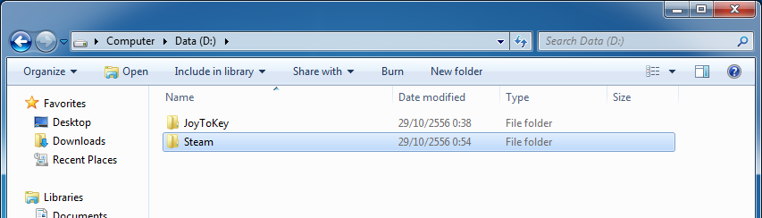 3. หลังจากเราได้ Windows ใหม่เอี่ยม ลง Driver อะไรต่าง ๆ เรียบร้อยและพร้อมจะเอา Steam และเกมของเรากลับมาแล้ว ก็ทำการก็อปปี้ Steam ที่เรา Backup ไว้กลับในที่ ๆ เราต้องการในเครื่องเราครับ อย่าลืมจำด้วยว่าเราเอาไปไว้ที่ไหนนะ (ในรูปนี้ผมเอาไปไว้ที่ D:\Steam)