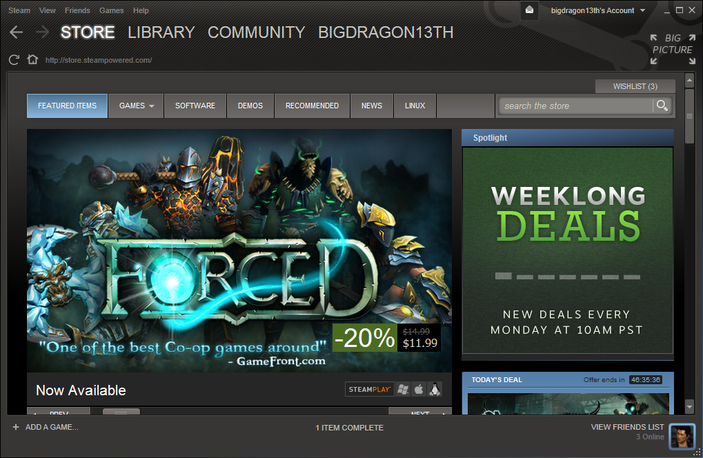6. หลังเสร็จสิ้น เราก็จะได้ Steam ตัวเดิมกลับมาเลย (โดยไม่ต้อง login ใหม่ด้วยซ้ำ user เก่าที่เราเคยใช้ก็ติดมาด้วยเลย)