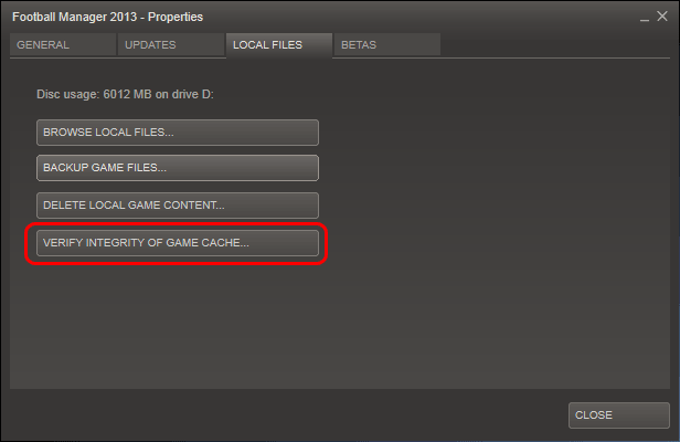 2. เลือกไปที่แท็บ Local Files และคลิกที่ Verify Integrity of Game Cache…